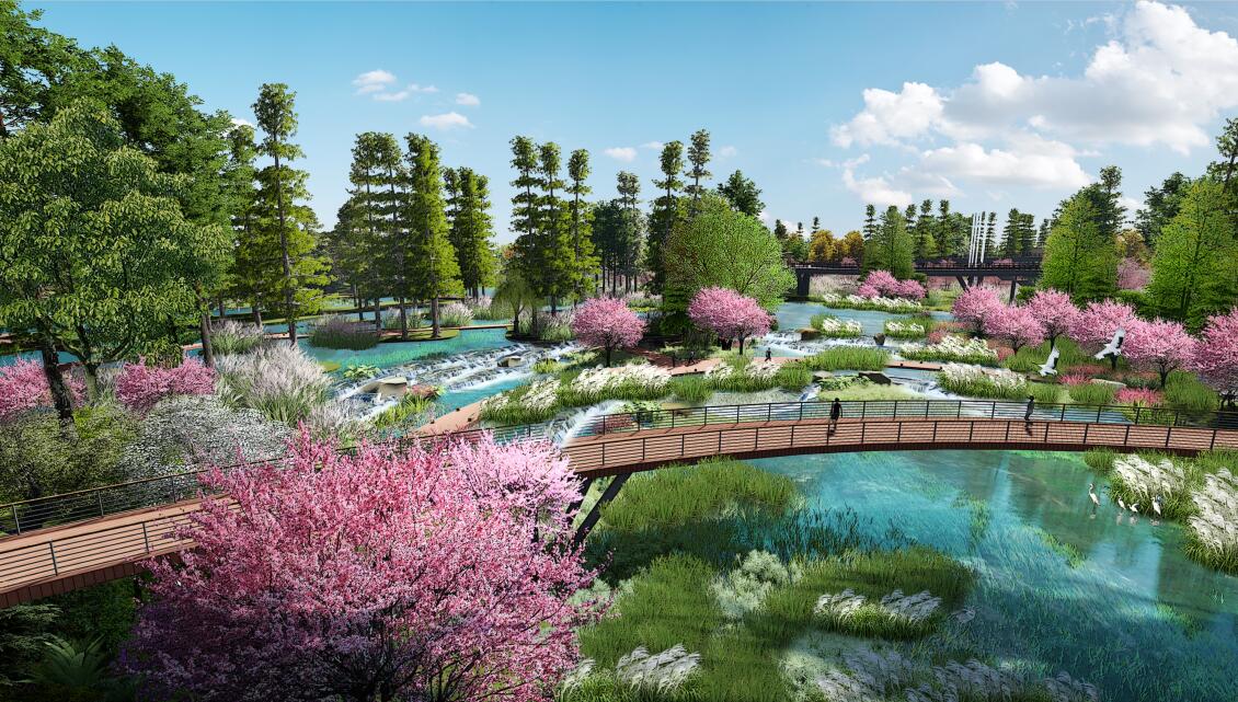 三江濕地生態(tài)修復(fù)工程位于撫州老城區(qū)西北,撫河、宜黃河、鳳崗河之水交匯于此,南靠撫州主城區(qū)撫河大道、北面撫河。三江濕地生態(tài)修復(fù)工程項目總面積約為1388畝,項目總投資2.3億元。項目包含景觀工程、水利工程、市政交通及橋梁工程、水生態(tài)工程、預(yù)警系統(tǒng)等幾大部分。景觀工程以“生態(tài)門戶、濕地天堂、候鳥棲地,休閑佳境,凈化平臺,觀光勝地”為主題定位,主要分區(qū)包括濕地、樹林、蘆葦灘、草甸、沙灘、蓮池、草坪、程家村改造、排洪河改造等。