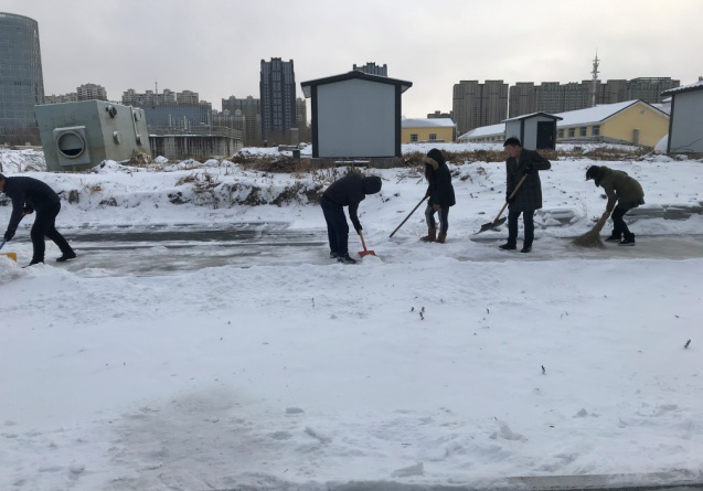 2019年11月17日,市氣象臺一天內連發大風藍色、暴雪黃色、道路結冰黃色預警三個氣象預警信號。為此,哈爾濱群力污水處理廠廠部與運管部立即啟動應急,堅持并加強值班值守、設施設備巡視巡查,特別針對室外設施設備的保溫加強,動員全廠員工對廠區道路和出入車間(工段)通道的積雪進行清掃,減少結冰、規避事故,保障了正常的生產運行,保障了正常的運營工作秩序。