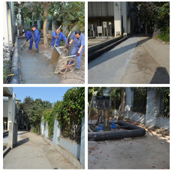 因污水處理產生的垃圾味道極其難聞,在整個活動過程中,大家始終保持“不怕臟、不怕臭、不怕累”的精神,戴著口罩,拿著掃把、鐵鍬、推車等工具,將灑落在垃圾屋周圍的細砂、纖維物等垃圾一一清掃裝車,集中至堆放處。同時,因垃圾屋周圍雜草叢生,不僅滋生蚊蟲,晚上還容易招來蛇鼠,不僅給垃圾清理及運輸帶來很大難度,員工生命財產安全也存在極大隱患。為徹底解決此類問題,在降低成本,提高經濟效益的基礎上,按照改造升級方案,大家人人化身“搬運工”、“水泥工”,除草、清運、澆筑、抹平......齊心協力、熱情高漲......