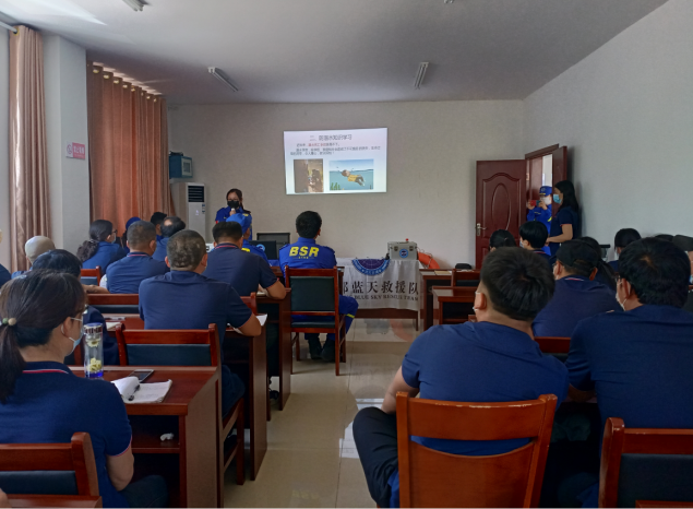 新鄭藍(lán)天救援隊(duì)秦教官就防溺水安全向大家重點(diǎn)強(qiáng)調(diào)“安全無小事,生命價更高”,希望每個員工認(rèn)真對待,防微杜漸,把安全當(dāng)作工作和生活中的頭等大事。接著又為我們講解防溺水的相關(guān)知識,并現(xiàn)場演示如何正確穿戴救生衣以及溺水施救的相關(guān)要領(lǐng)。室內(nèi)培訓(xùn)結(jié)束后,大家列隊(duì)趕往防溺水應(yīng)急演練模擬現(xiàn)場——廠區(qū)二沉池。救援隊(duì)教官們現(xiàn)場講解并演練了溺水后的安全施救流程:有效打撈、報(bào)警、現(xiàn)場搶救及后續(xù)現(xiàn)場整理等等。