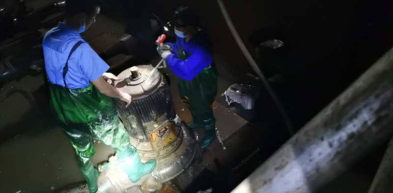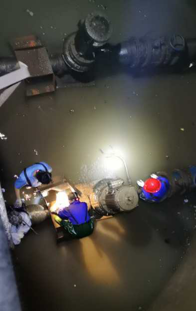 但是災(zāi)難的來(lái)臨總是讓人防不勝防。從2020年7月6日起,績(jī)溪縣境內(nèi)普降暴雨,多處地方發(fā)生山洪,7月7日凌晨3點(diǎn),揚(yáng)之河河水暴漲,沿途許多村莊進(jìn)水,道路、農(nóng)田被淹,多處供水供電設(shè)施被沖毀。凌晨4點(diǎn),績(jī)溪廠的外部供電線路電塔被洪水沖倒,廠區(qū)隨即處于停電狀態(tài),所有設(shè)備被迫停止運(yùn)行,進(jìn)水提升泵房隨后被洪水淹沒(méi)。事故發(fā)生后,績(jī)溪廠立即啟動(dòng)突發(fā)重大環(huán)境事件應(yīng)急預(yù)案,所有員工破除各種困難在第一時(shí)間返廠展開(kāi)搶險(xiǎn)救援工作,利用現(xiàn)有資源,組織人員對(duì)提升泵房積水進(jìn)行抽離。8日凌晨2時(shí),提升泵終于全部露出水面,在廠領(lǐng)導(dǎo)帶領(lǐng)下立即組織人員對(duì)3臺(tái)提升泵進(jìn)行拆卸工作,并在提升泵電機(jī)全部拆卸下來(lái)后,立即送往專業(yè)的電機(jī)修理店進(jìn)行清洗、烘干處理,同時(shí)安裝備用電機(jī)。經(jīng)過(guò)30個(gè)小時(shí)的連續(xù)奮戰(zhàn),第一臺(tái)備用提升泵電機(jī)在8日7時(shí)完成搶修安裝工作,并于17時(shí)左右恢復(fù)正常運(yùn)行。為了保證水廠的正常運(yùn)行,全廠男同志并沒(méi)有想著休息片刻,大家立即帶著滿身的疲憊又投入了第二臺(tái)提升泵的搶修工作中去。9日晚第二臺(tái)提升泵完成了搶修安裝工作,投入正常運(yùn)行工作,并于9日9時(shí),對(duì)提升泵房進(jìn)行清掃工作,讓泵房的環(huán)境衛(wèi)生煥然一新。 績(jī)溪廠提升泵房位于地下22米處,環(huán)境陰暗潮濕,空氣污濁,但是績(jī)溪廠的每一位干部職工不怕臟不怕累,通力協(xié)作,讓水廠在最短的時(shí)間內(nèi)恢復(fù)生產(chǎn),把企業(yè)的損失降到最低點(diǎn),順利完成了這次抗洪搶險(xiǎn)工作。